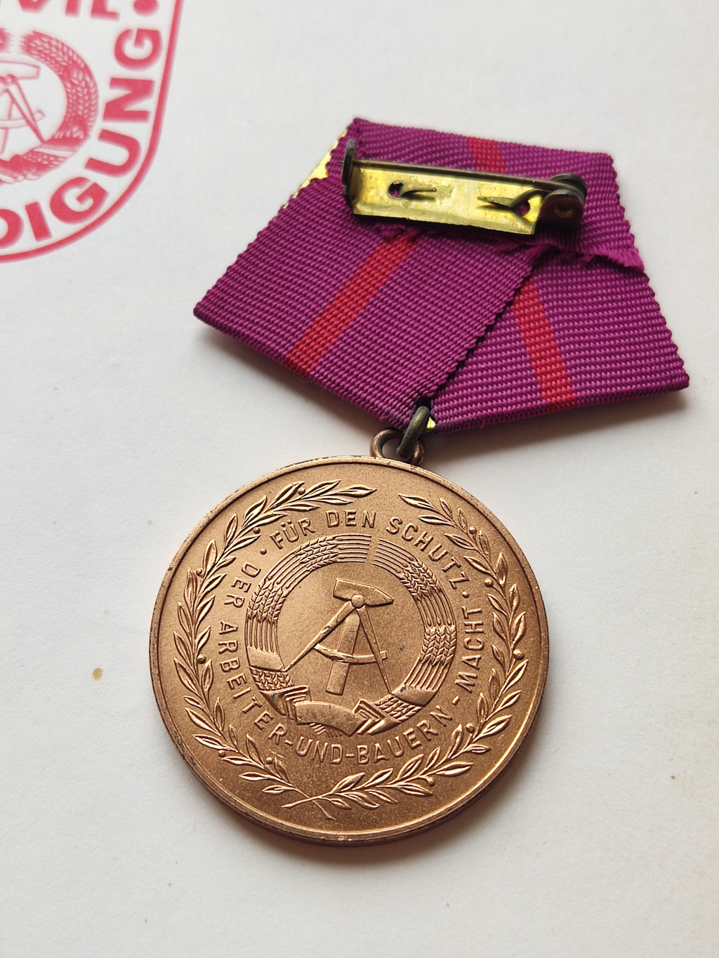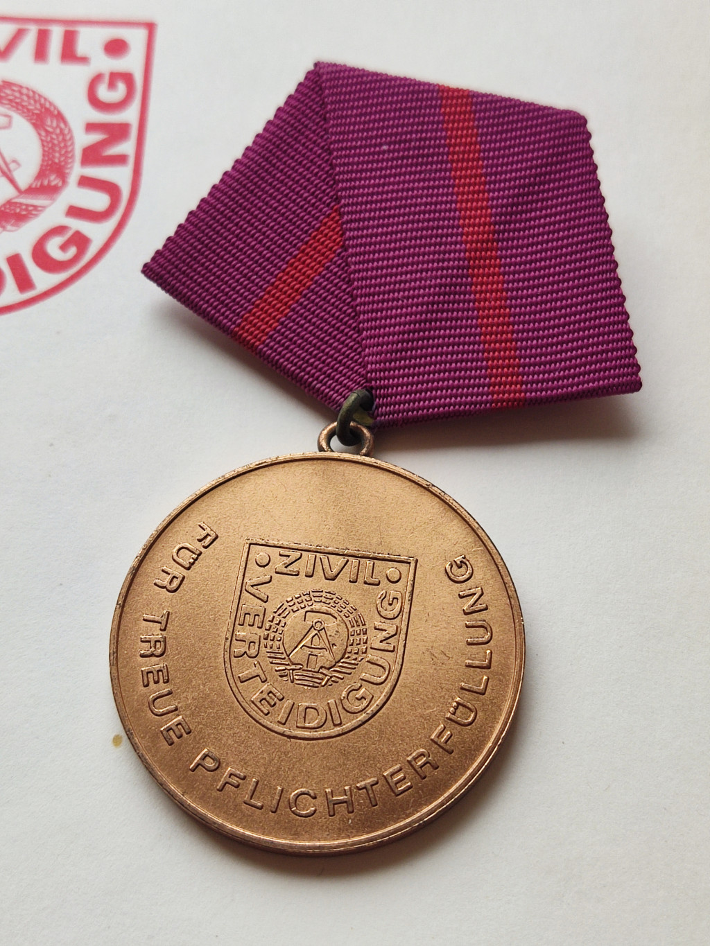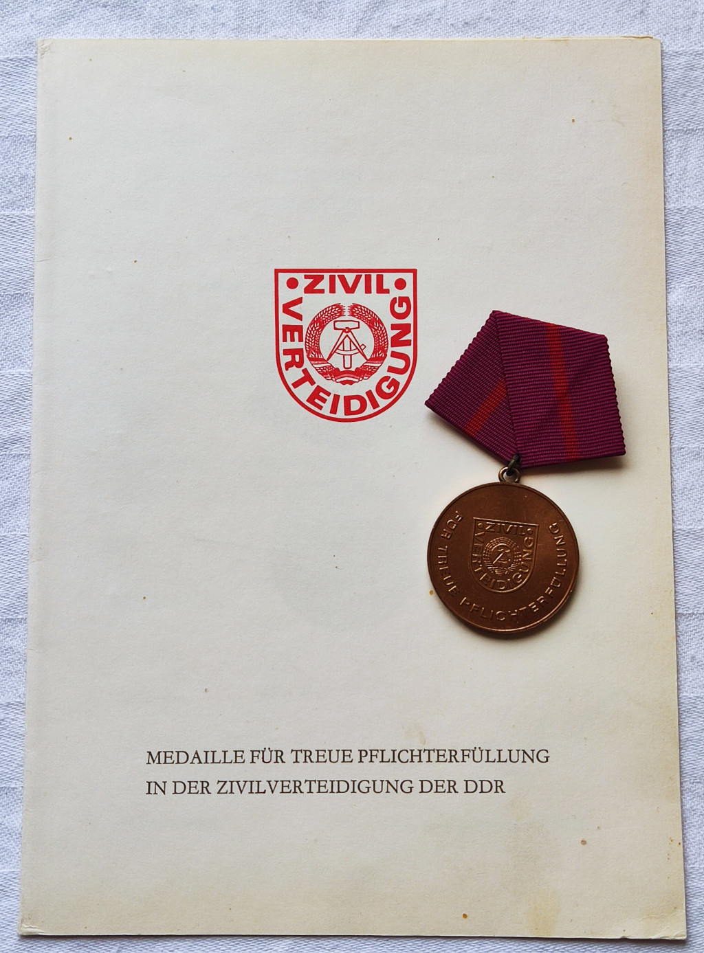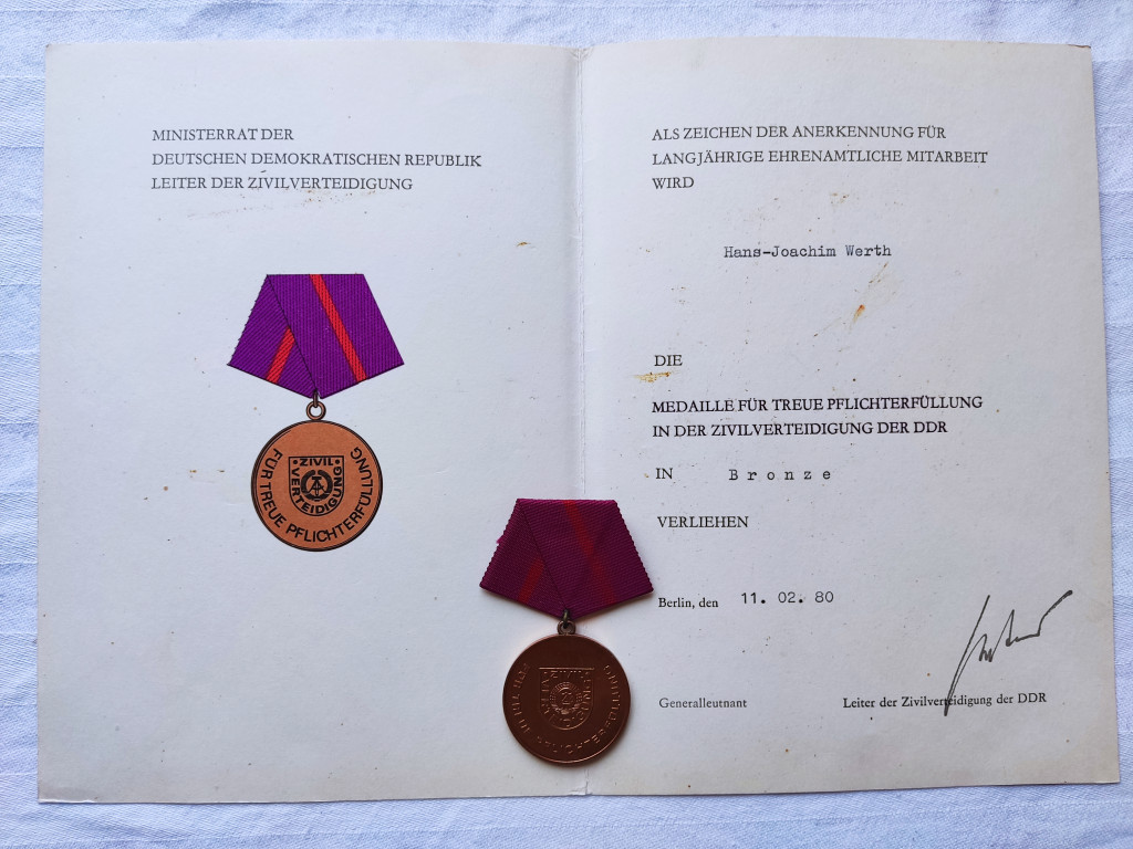 East German Civil Defence Zivilverteidigung der DDR Medal with award certificate